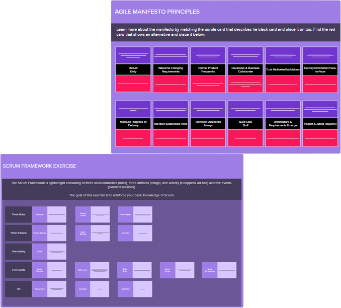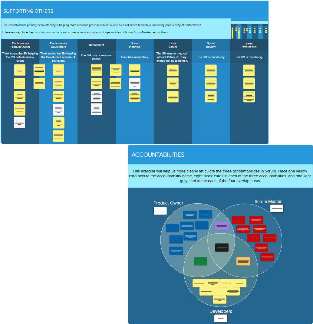We use Zoom as the core virtual technology and we use Miro as virtual space where we run exercises, and play educational games, resulting in an interactive session.