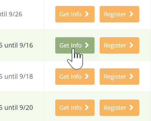 Find the session you want on the class list, then click "Get Info". Early-bird and alumni discounts do not need to be requested.